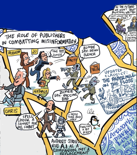 From The role of publishers in combatting misinformation with Deborah Dixon (Global Editorial Director, Medicine and Science Journals of Oxford University Press), Nathalie Le Bot (Editorial Director for Health and Clinical Sciences at Nature Communications), Jo Wixon (Director of External Analysis at Wiley) and Richard Smith